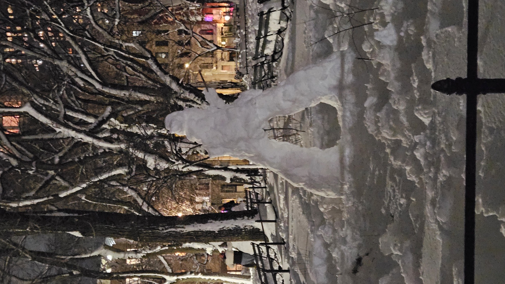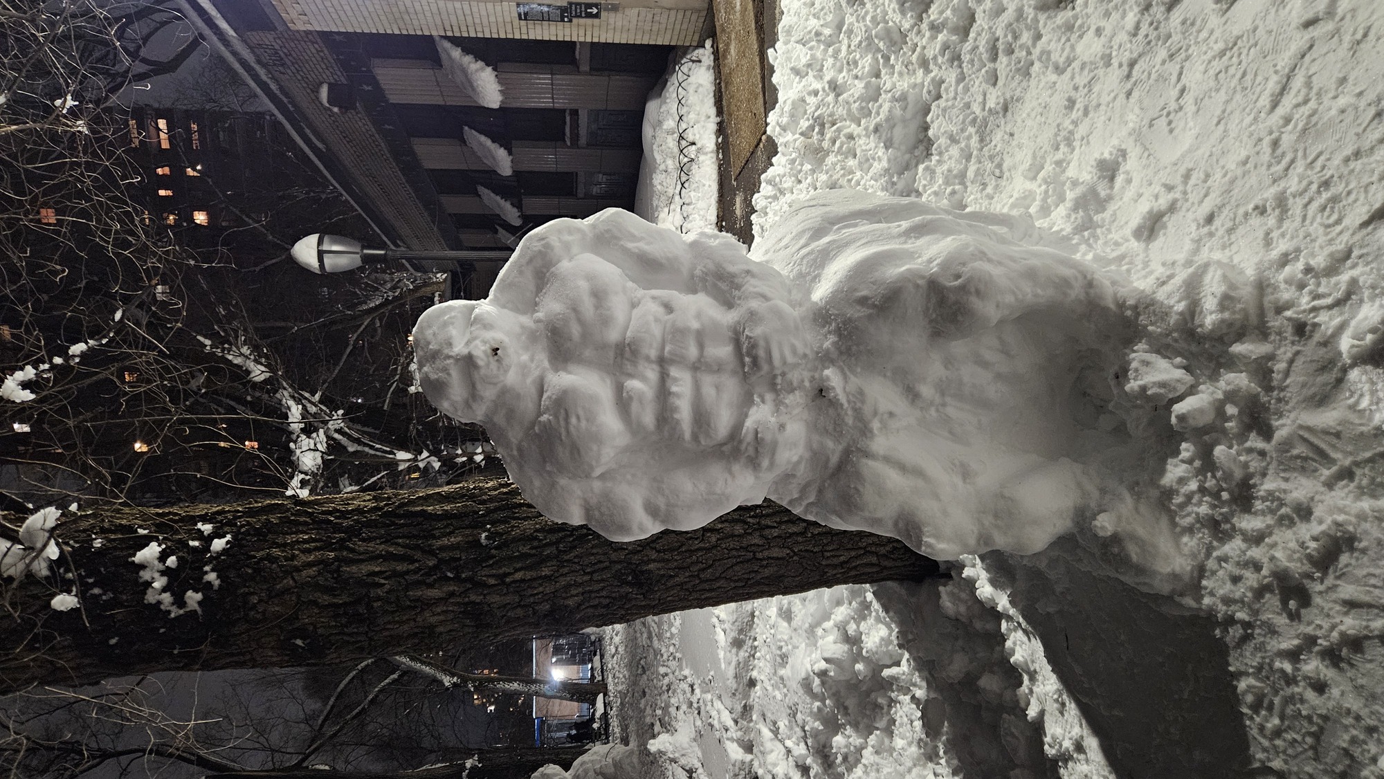 A metal stake falls from the construction above and slams onto the sidewalk a few feet away from us. Big enough to have killed someone if it hit.